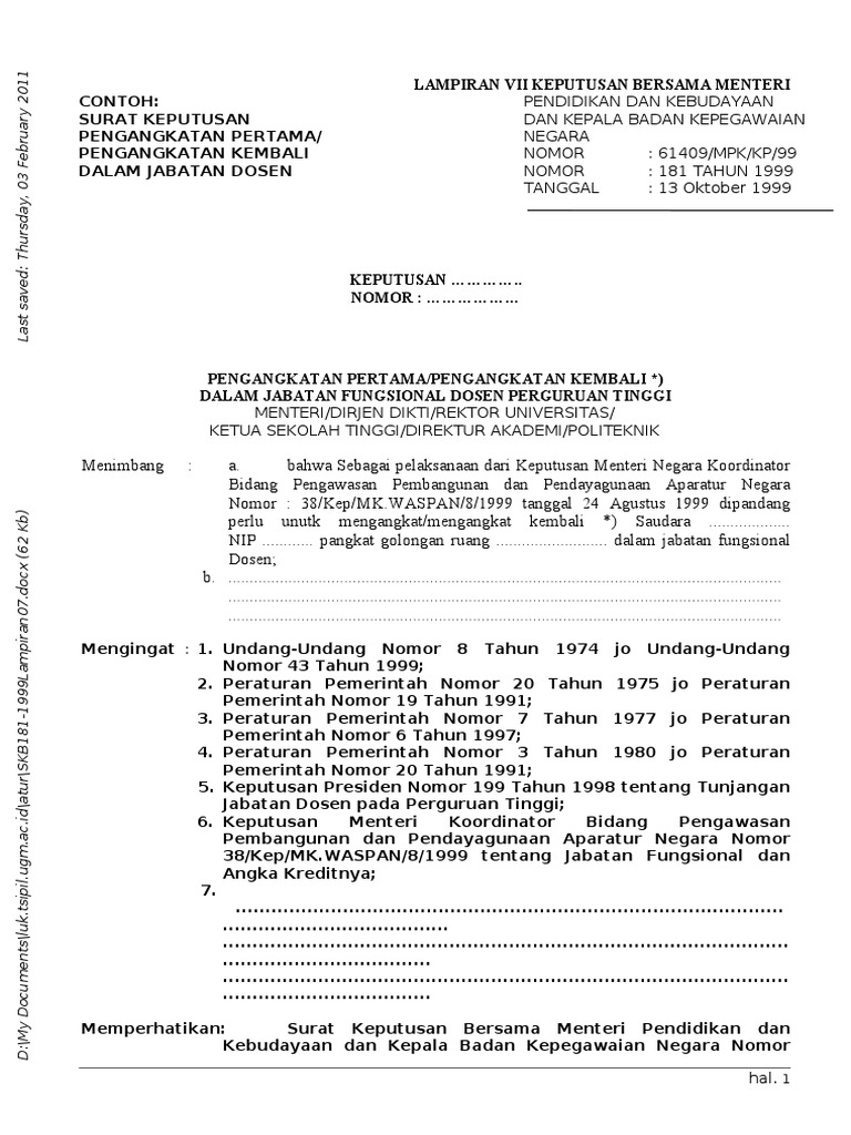 Doc (model 3) download format pdf: contoh surat keputusan. Surat pengangkatan karyawan tetap ( contoh 5 ) surat keputusan.